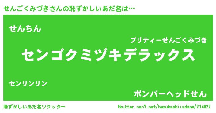 | 意味不明あだ名 | 『住所不定無職せんごくみづき(79歳)』 |