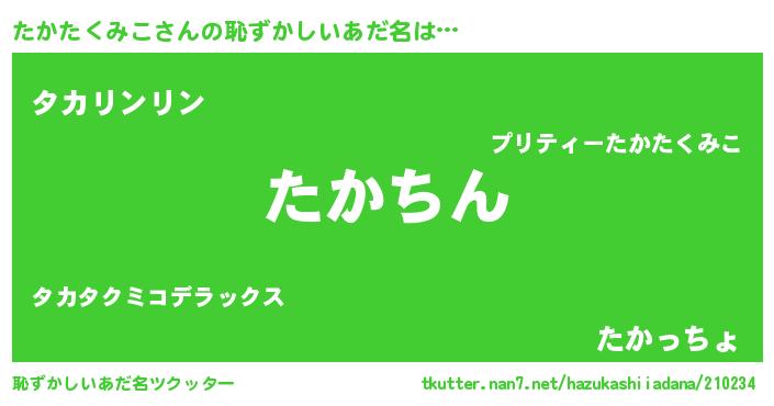 | 意味不明あだ名 | 『永久保存たかたくみこ』 |