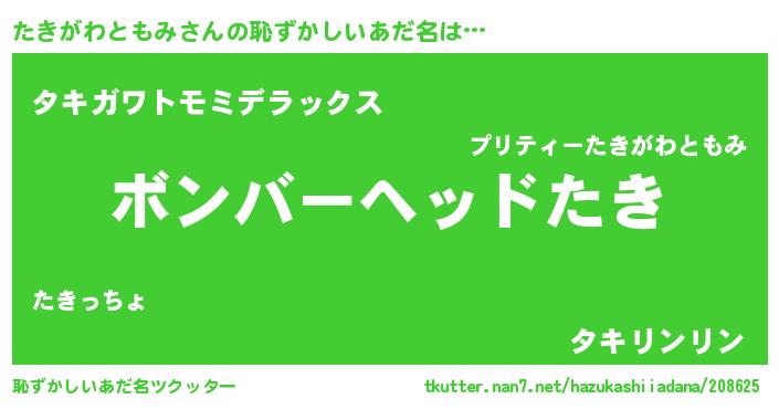 | ヘコむあだ名 | 『たき太郎』『たきにゅー』『つくし』 |