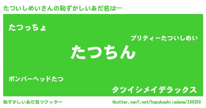 | 男性向けラノベタイトル風あだ名 | 『タツイシメイスレイヤー』 |