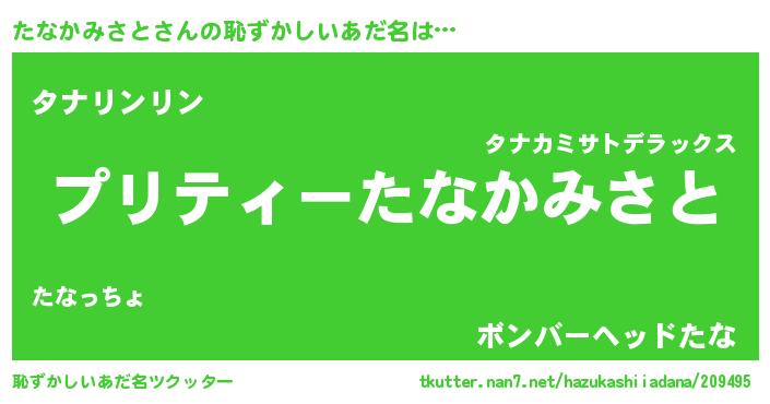 | ヒーロー風カッコイイあだ名 | 『スーパータナカミサト』『黄金騎士タナ』 |