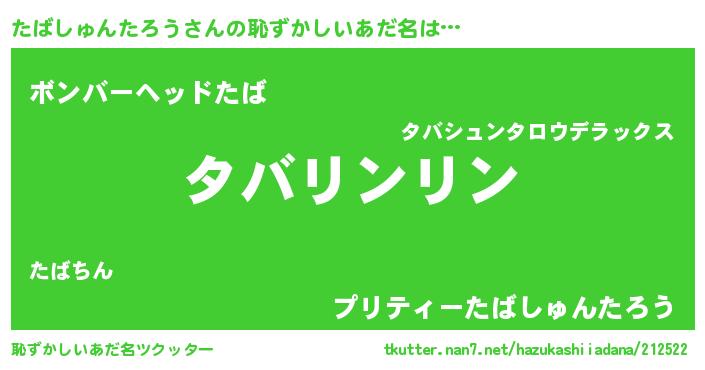 | 胡散臭い通販商品みたいなあだ名 | 『信頼と実績のサプリメント…その名も「たばしゅんたろう」』 |