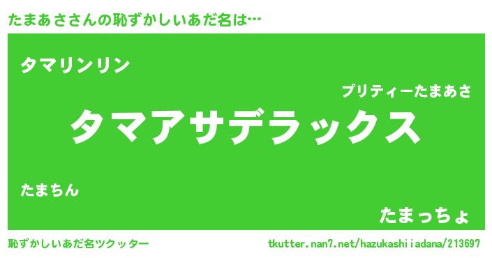 | 意味不明あだ名 | 『自称たまあさ』『たまあさフォーエバー』 |