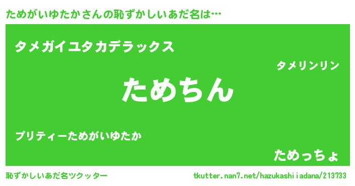 | 男性向けラノベタイトル風あだ名 | 『ためがいゆたかという概念が存在しない退屈な世界 』 |