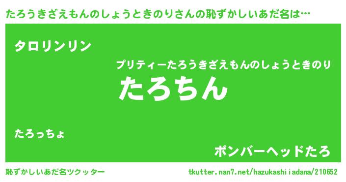 | ヘコむあだ名 | 『たろうきざえもんのしょうときのり(笑)』 |