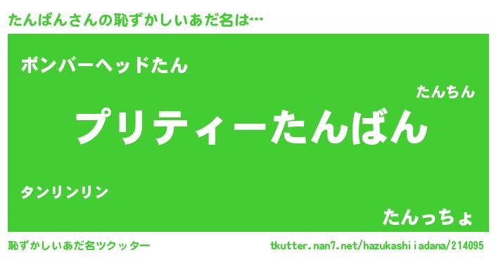 | 意味不明あだ名 | 『住所不定無職たんばん(91歳)』 |