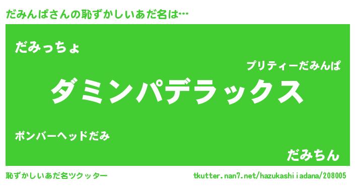 | 胡散臭い通販商品みたいなあだ名 | 『芸能人もオススメする高麗人参…その名も「だみんぱ」』 |