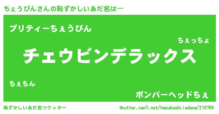 | 意味不明あだ名 | 『自称ちぇうびん』『ペロリンちぇうびん』 |