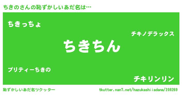 | 欧米人風あだ名 | 『ダルビッシュちきの』『ウサインちきの』 |