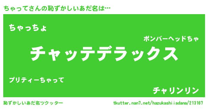 | 意味不明あだ名 | 『自称ちゃって』『ちゃってフォーエバー』 |