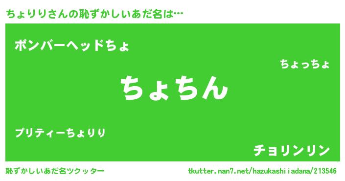 | ヘコむあだ名 | 『ちょりり(笑)』『ちょお』 |