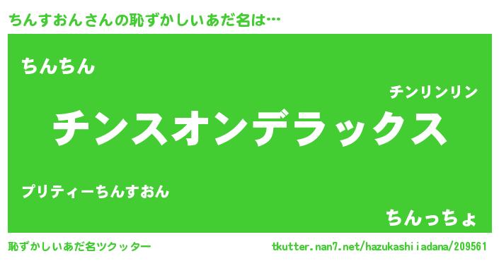 | 男性向けラノベタイトル風あだ名 | 『Re:ちんすおんから始める異世界生活』 |
