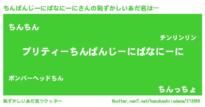 | 意味不明あだ名 | 『ペロリンちんぱんじーにばなにーに』 |