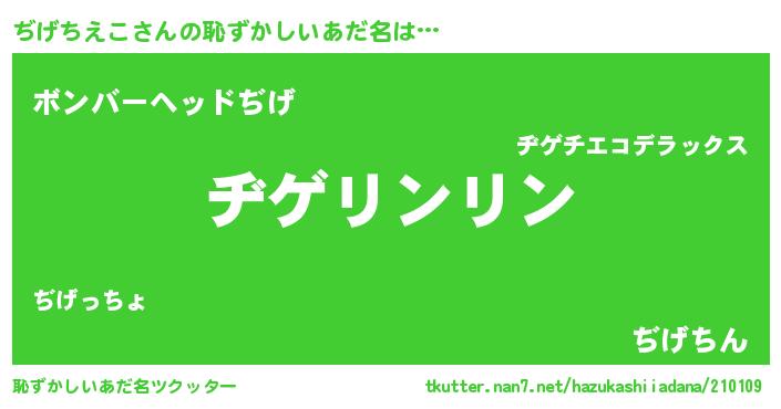 | ポケモン風あだ名 | 『ヂゲキング』『ヒヂゲチエコ』 |