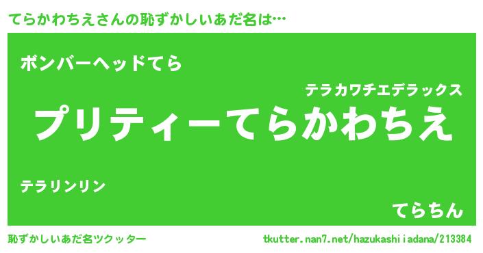 | ヘコむあだ名 | 『てらふぇ~』『てらかわちえ(笑)』 |