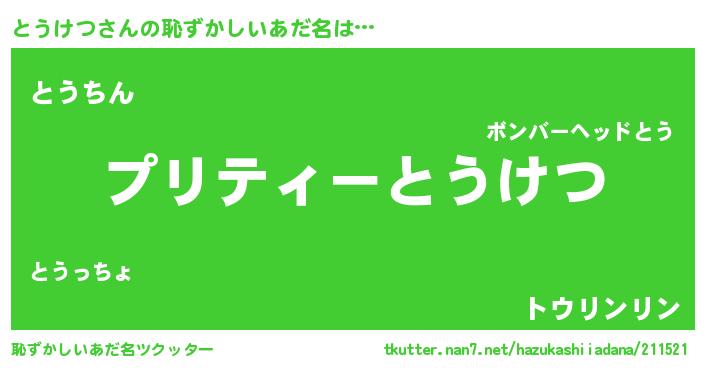 | 意味不明あだ名 | 『ペロリンとうけつ』『永久保存とうけつ』 |