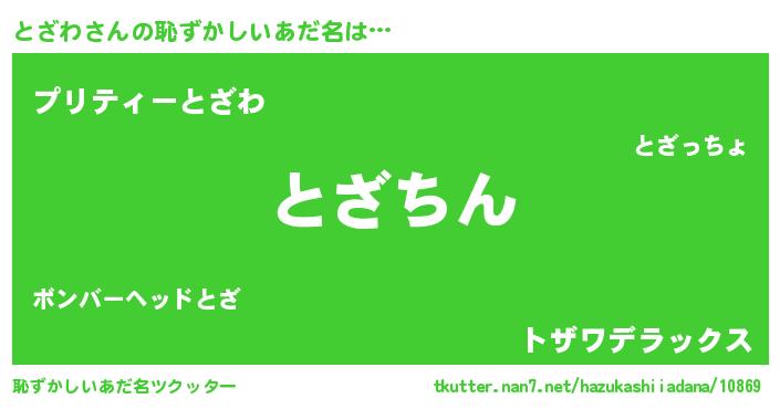 | ポケモン風あだ名 | 『トザゴンZ』『ゼニトザ』 |