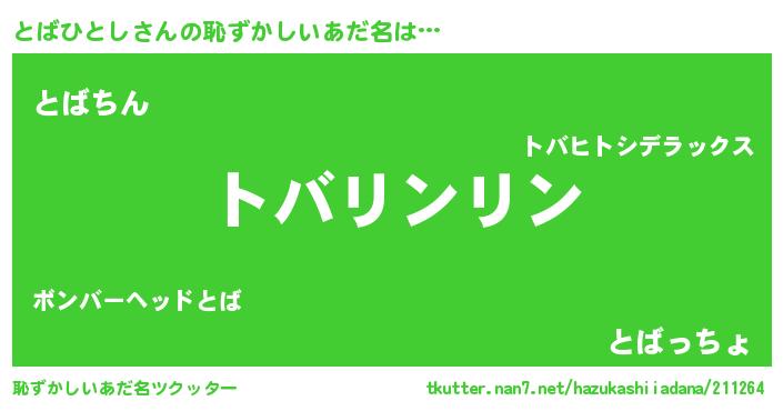 | ヘコむあだ名 | 『とばお』『とばひとし(苦笑)』 |