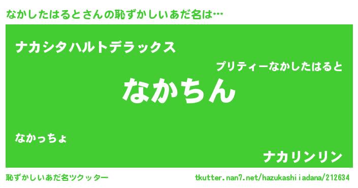 | 男性向けラノベタイトル風あだ名 | 『なかしたはるとという概念が存在しない退屈な世界 』 |