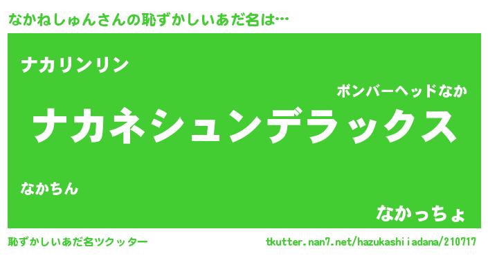 | 男性向けラノベタイトル風あだ名 | 『Re:なかねしゅんから始める異世界生活』 |