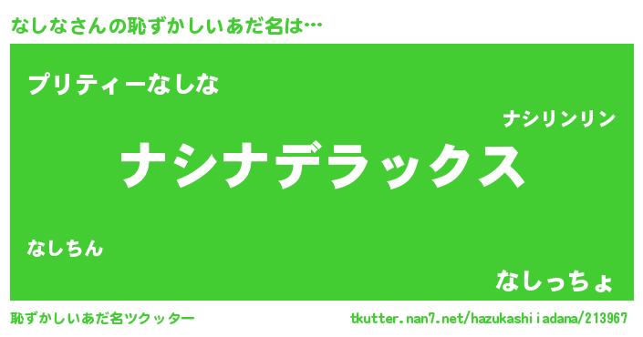| ヒーロー風カッコイイあだ名 | 『サイバー戦士ナシナ』『スーパーナシナ』 |
