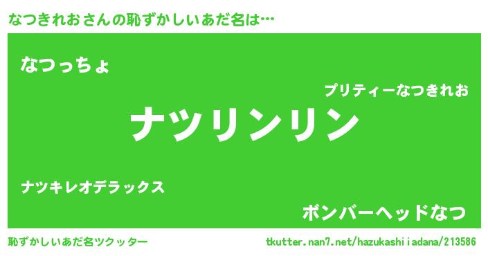 | 意味不明あだ名 | 『住所不定無職なつきれお(71歳)』 |