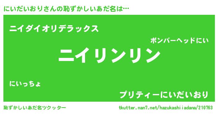 | ポケモン風あだ名 | 『ニイゴンZ』『ヒニイダイオリ』 |