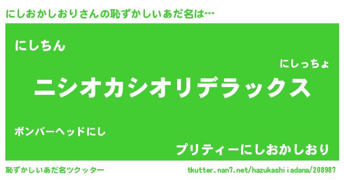 | ヘコむあだ名 | 『にしおかしおり(遠い目)』『にしにゅー』 |