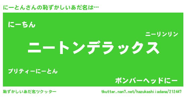 | 意味不明あだ名 | 『自称にーとん』『永久保存にーとん』 |
