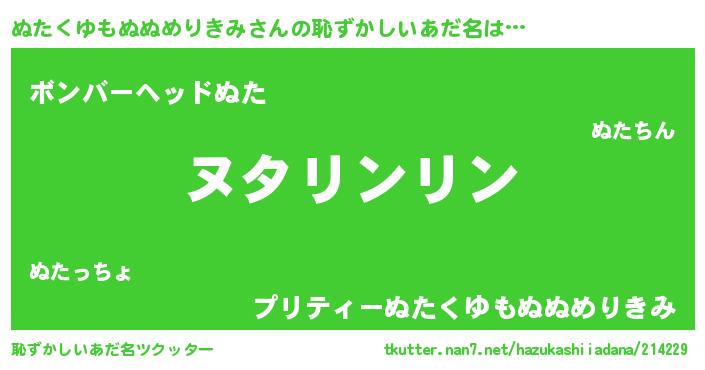 | ポケモン風あだ名 | 『ヒヌタクユモヌヌメリキミ』『ヌータイ』 |