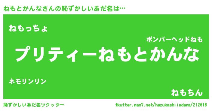 | 男性向けラノベタイトル風あだ名 | 『この素晴らしい世界にねもとかんなを!』 |