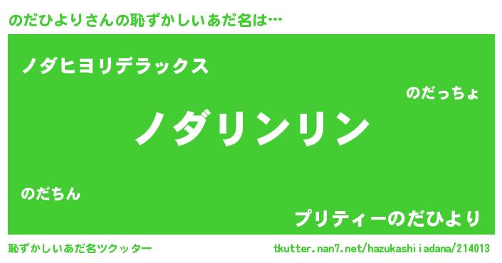 | 欧米人風あだ名 | 『トリンドルのだひより』 |