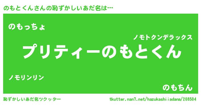 | 男性向けラノベタイトル風あだ名 | 『のもとくんに滅ぼされるだけの簡単なお仕事です』 |