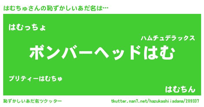 | 意味不明あだ名 | 『住所不定無職はむちゅ(1歳)』 |