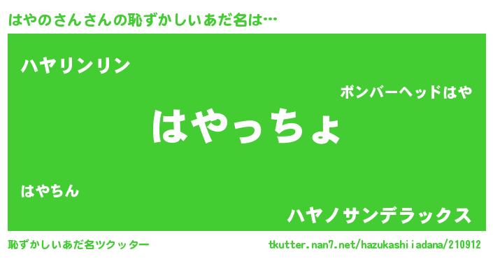 | ポケモン風あだ名 | 『ハヤノダネ』『ヒハヤノサン』 |