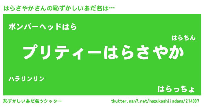 | ヒーロー風カッコイイあだ名 | 『スーパーハラサヤカ』『ネオハラサヤカ』 |