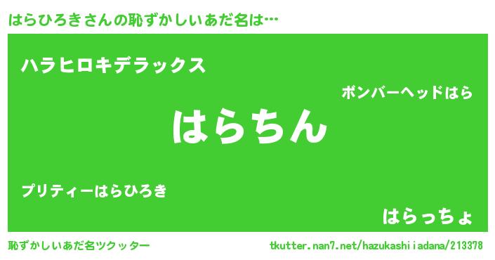 | 意味不明あだ名 | 『永久保存はらひろき』『自称はらひろき』 |