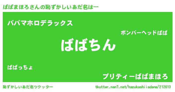 | ヘコむあだ名 | 『ばばまほろ(笑)』『ばばもー』 |