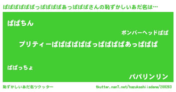 | 男性向けラノベタイトル風あだ名 | 『ぱぱぱぱぱぱっぱぱぱぱあっぱぱぱの憂鬱』 |