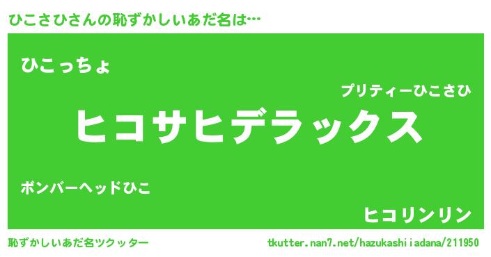 | ヒーロー風カッコイイあだ名 | 『サイバー戦士ヒコサヒ』『銀牙騎士ヒコ』 |
