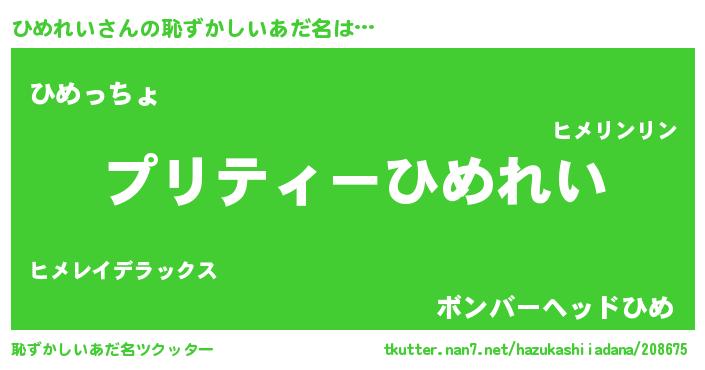 | 欧米人風あだ名 | 『マイケルひめれい』『ダニエルひめれい』 |