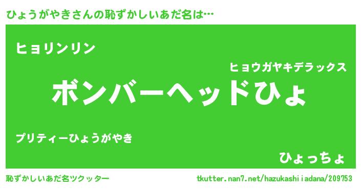 | 料理風あだ名 | 『ひょうがやきのトマト煮』 |