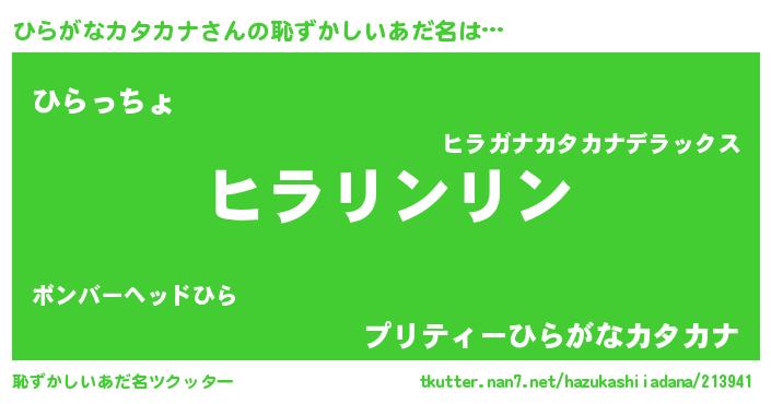 | ポケモン風あだ名 | 『ヒヒラガナカタカナ』『ヒラキング』 |