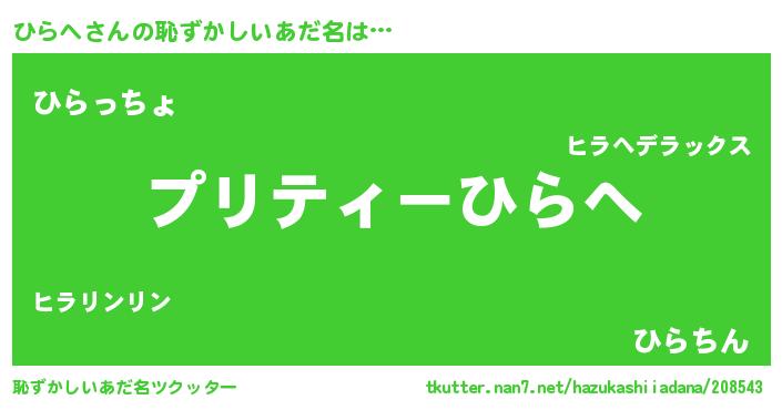 | ヘコむあだ名 | 『ひらにー』『酢こんぶ』『ひらを』 |