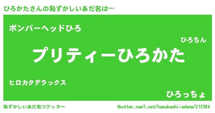 | ヒーロー風カッコイイあだ名 | 『スーパーヒロカタ』『仮面ヒロダー』 |