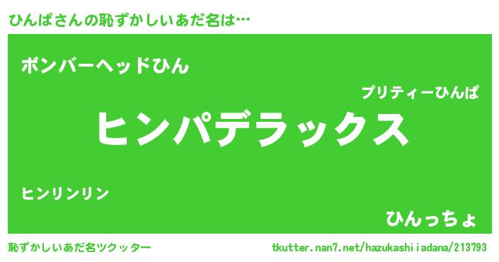 | 女子向けラノベタイトル風あだ名 | 『ひんぱなんてお断りですっ。』 |