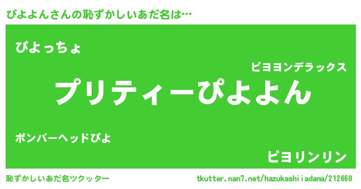 | 可愛いあだ名 | 『ぴんぴん』『ぴよぷりん』 |