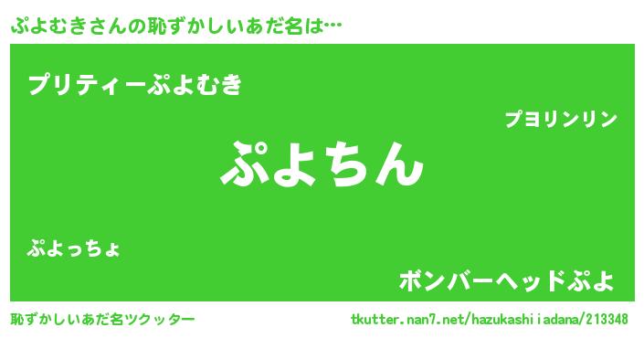 | 意味不明あだ名 | 『永久保存ぷよむき』『ペロリンぷよむき』 |
