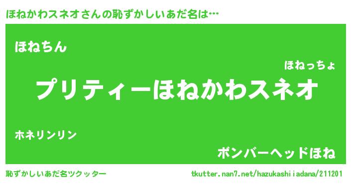 | ヒーロー風カッコイイあだ名 | 『スーパーホネカワスネオ』 |