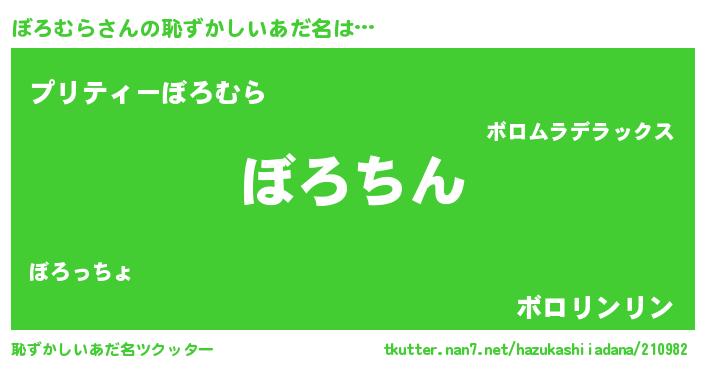 | ヘコむあだ名 | 『ぼろむら(爆)』『ぼろっふぃ~』 |